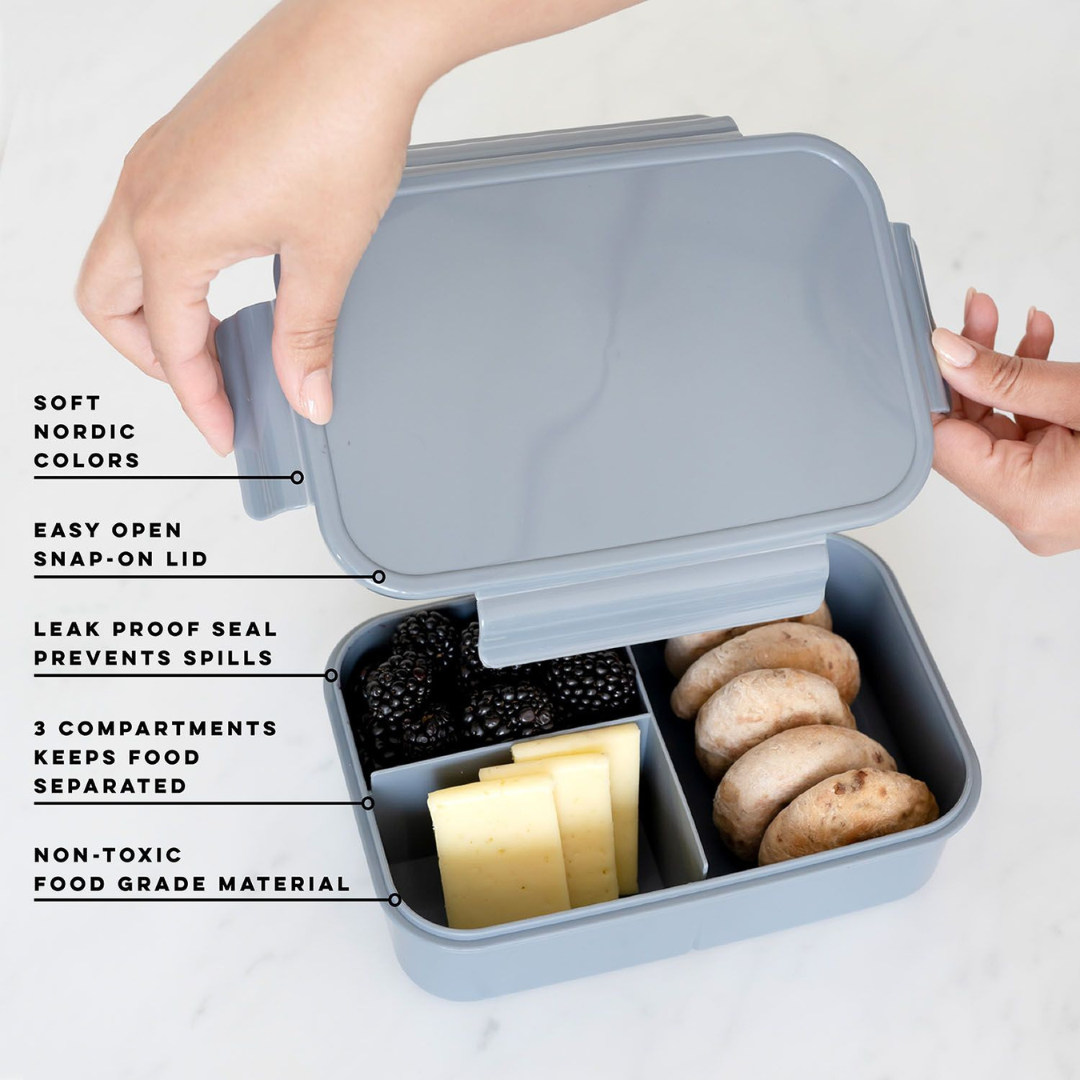 Praktisk og stilfuld madkasse fra 3 Sprouts med tre separate rum, der holder maden adskilt og lækagesikker. Madkassen har et børnevenligt åbne- og lukkesystem, der gør den nem for små hænder at håndtere. Den kan kombineres med drikkedunk i samme farve for et flot match.