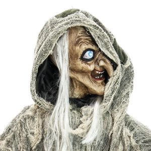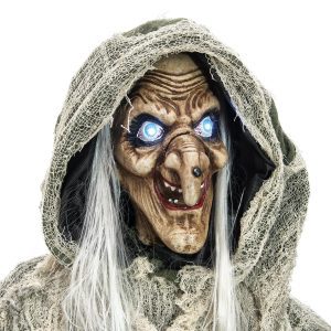 Denne animerede figur er perfekt til at skabe en skræmmende stemning til Halloween. Med blinkende hvide øjne, uhyggelige lydeffekter og et hoved, der bevæger sig, bliver den hurtigt et blikfang i din dekoration. Animationen varer op til 20 sekunder ad gangen, og de formbare arme gør det nemt at tilpasse figuren til omgivelserne.