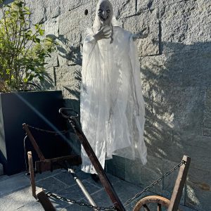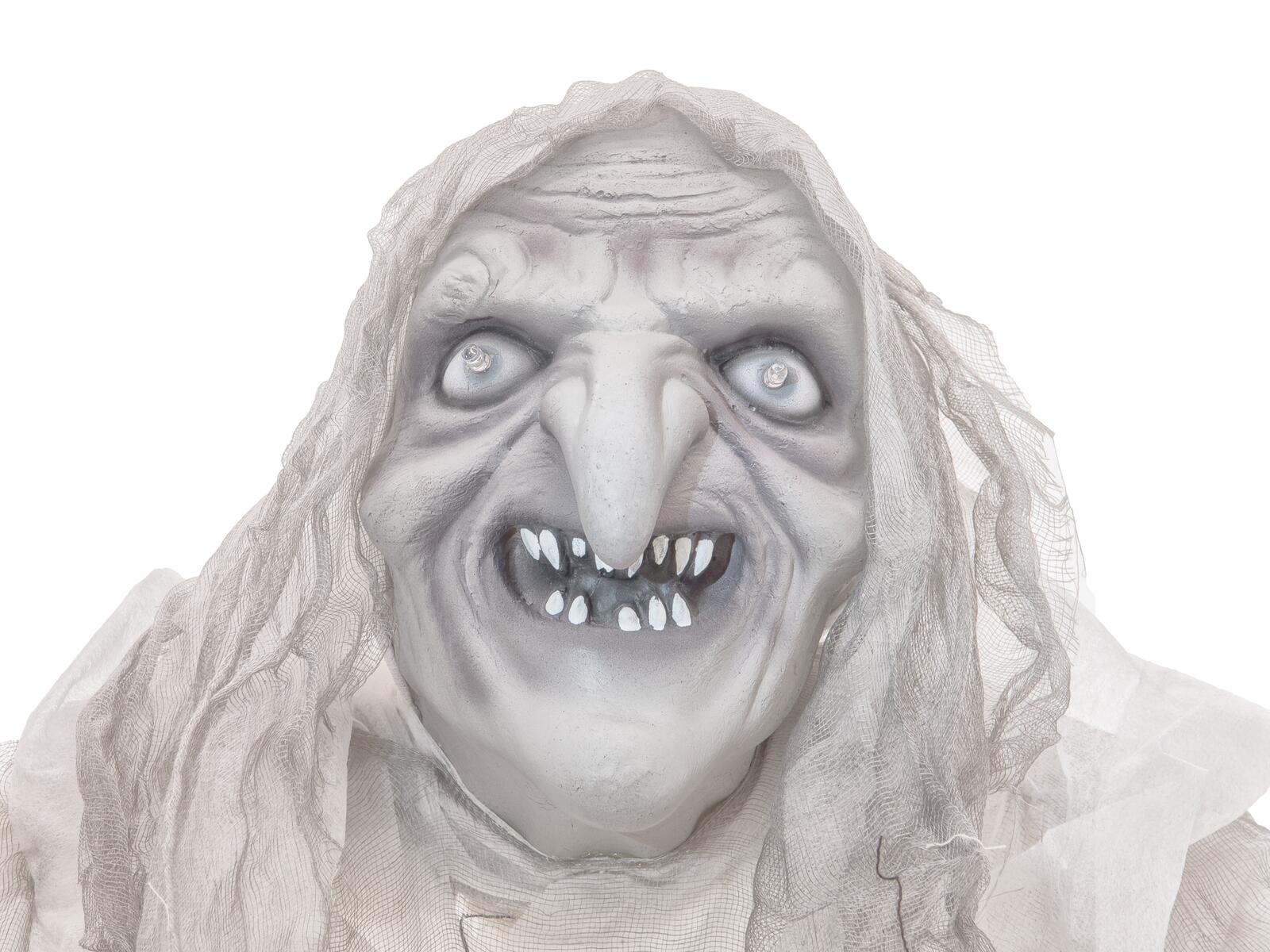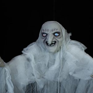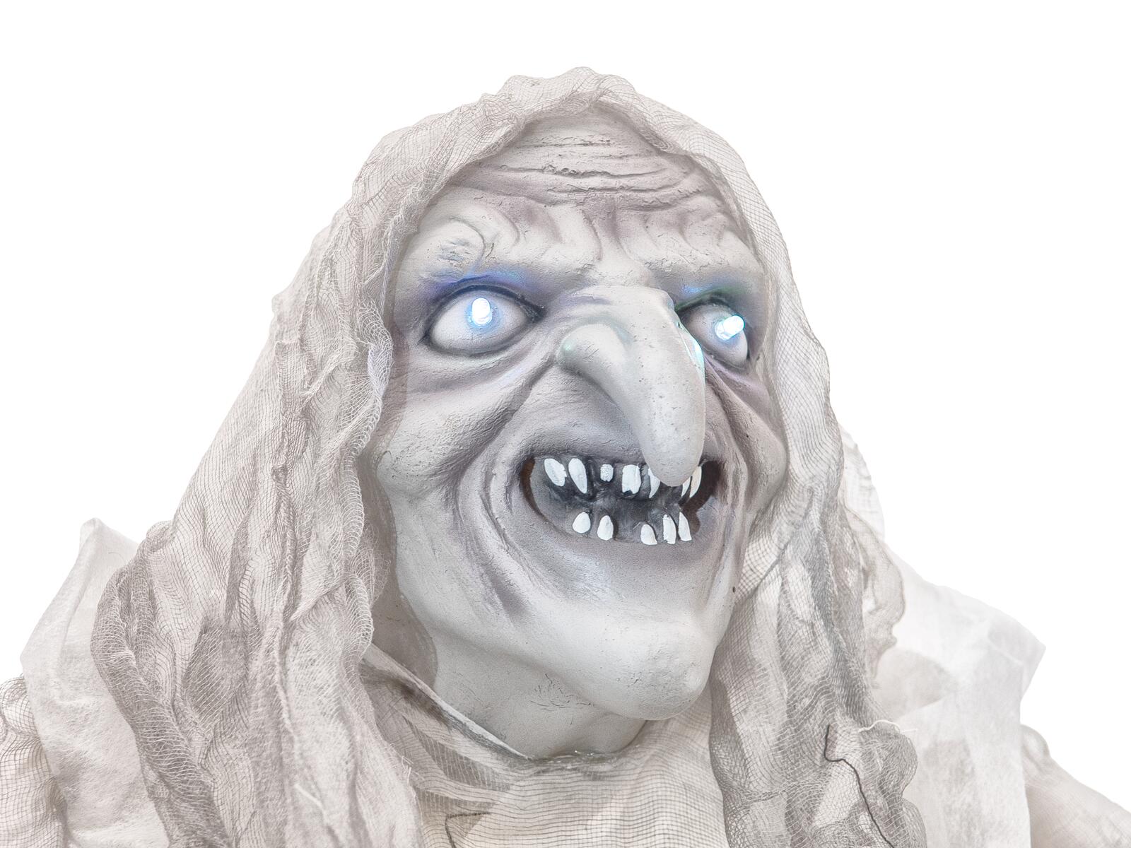 Skab maksimal uhygge til Halloween med denne animerede figur, der kombinerer lys, lyd og bevægelseseffekter. De blinkende multicolor-øjne og realistiske lydeffekter gør den ekstra skræmmende, mens bevægelseseffekten kører i op til 20 sekunder ad gangen. Med formbare arme kan figuren nemt tilpasses og placeres, så den giver den helt rigtige gyselige stemning. Figuren er batteridrevet og leveres klar til brug.