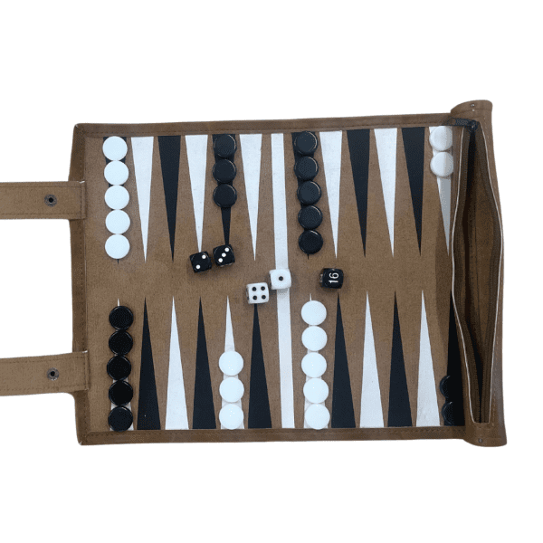 Tag dit yndlingsspil med overalt med denne praktiske Backgammon rejseudgave i rulleformat. Spillet kombinerer funktionelt design med klassisk æstetik og er nemt at rulle sammen og lægge i tasken. Perfekt til ferier, cafébesøg eller hyggelige stunder på farten.