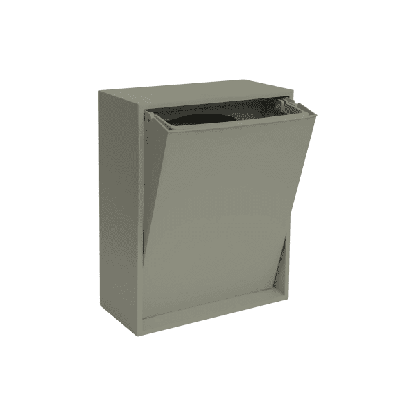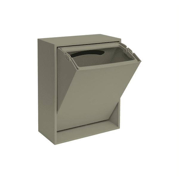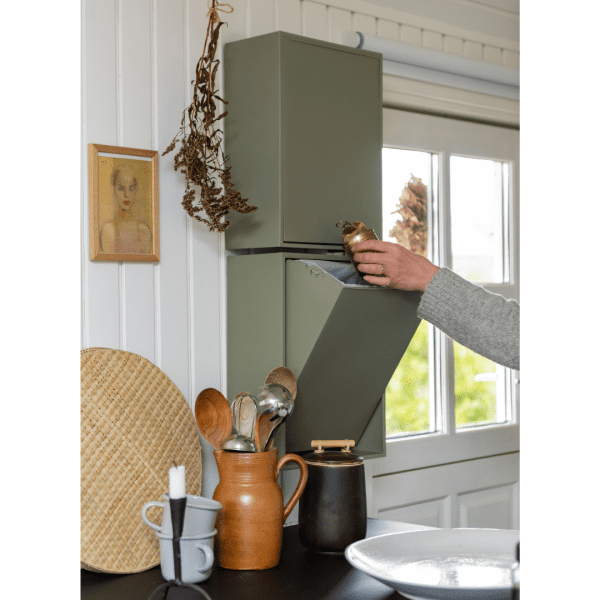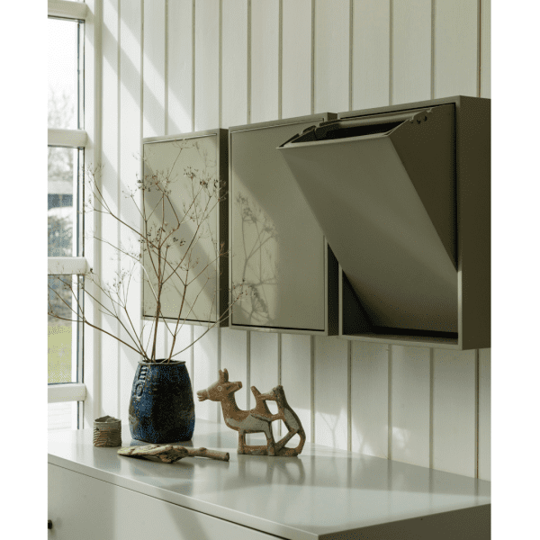 Dette design er enkelt, praktisk og flot. Med blot 15 cm i dybden for du en væghængt sorteringsløsning, som ikke fylder meget ud i rummet. Hvilket betyder at den blot kan bruges mange steder i indretningen. Monter den i køkken, bryggers eller depot og gør det nemmere at sortere dit affald i en travl hverdag.