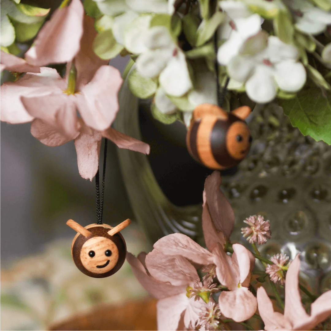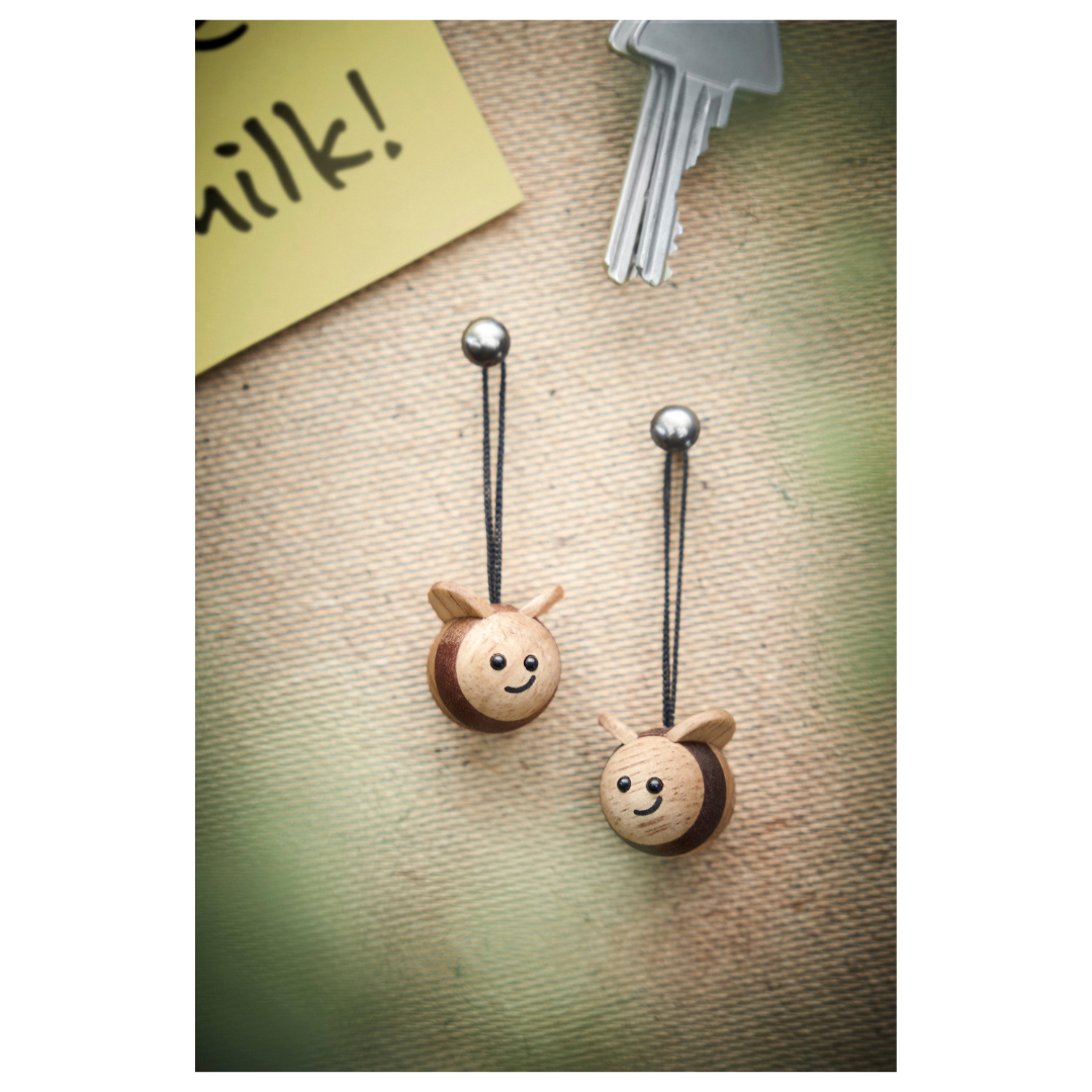 Bring naturens glæde ind i hjemmet med de to bier i træ fra FableWood. Disse fine små bier kan hænges eller placeres i ethvert rum og tilfører en charmerende, naturlig stemning. Perfekte som dekorative på en gren eller opslagstavle, hvor de skaber liv og hygge uden at fylde for meget.