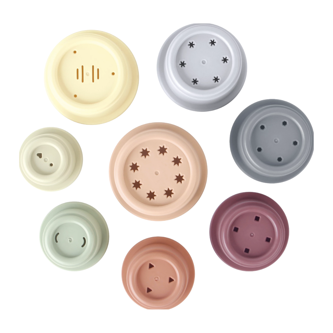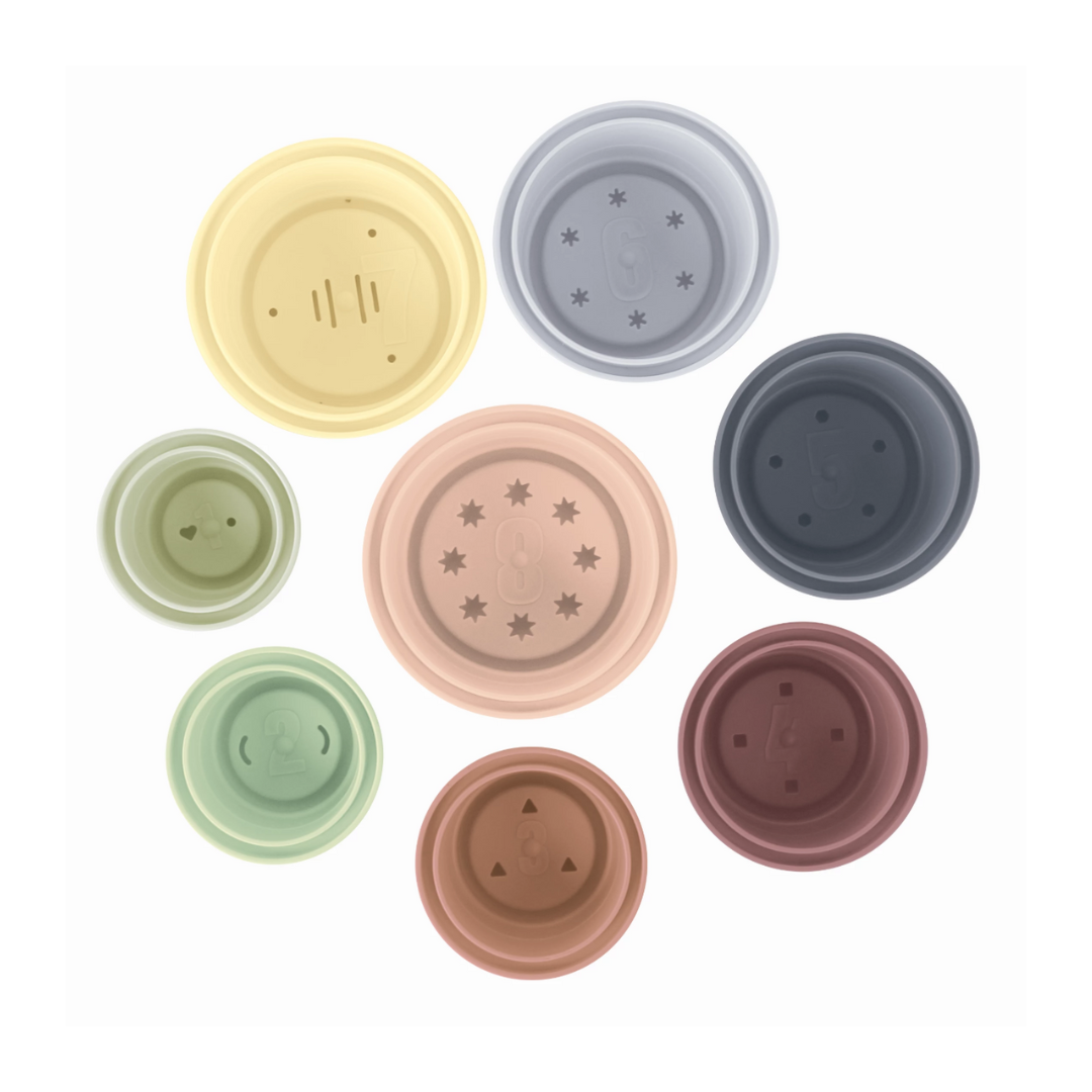 Disse fine stablekopper fra Kinder and Kids giver mange timers leg både i badet, på stranden og i sandkassen. Kopperne kommer i afdæmpede farver og er designet med både tal og unikke huller, som gør dem sjove at bruge til vandleg.