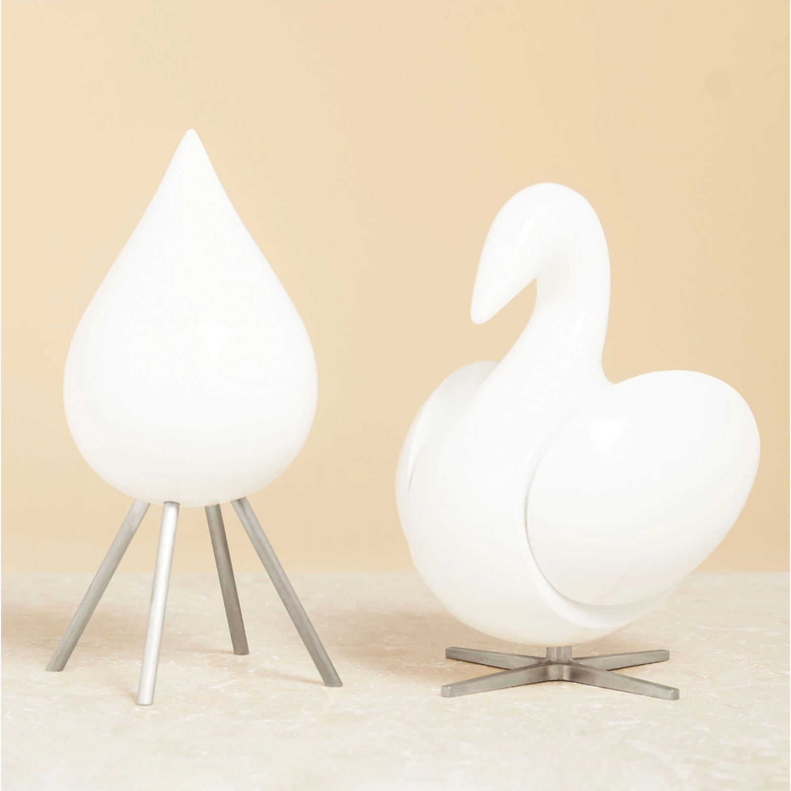 Du finder flere klassikere som er tro mod originalerne. Svanen fås både som plakat og træfigur. Plakaten fås i flere forskellige farver og kan kombineres med flere af de andre plakater. Find inspiration blandt de mange billeder under hvert design. Brainchild svanen er et af det nyeste skud og vi forventer at kunne forhandle den i 2021. Træfiguren svanen er designet med udgangspunkt i Træfiguren Ægget, hvor den blot er vendt 90 grader, derudover at de produceret i samme materialer. Både Ægget og Svanen er produceret i en kombination af mahogni træ og messing fod.