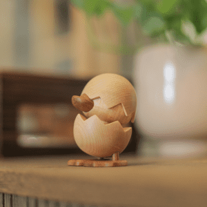 Skjult i sin lille skal venter Den Grimme Ælling tålmodigt på sin tid til at blomstre. Inspireret af H.C. Andersens elskede eventyr symboliserer denne håndlavede træfigur håb, selvværd og det smukke i at finde sin plads i verden.