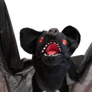 Tilføj et mørkt og dramatisk element til din Halloween-dekoration med denne hængende flagermus. Den sorte figur har intense røde øjne og mund samt formbare vinger, så du nemt kan justere udtrykket. Perfekt til at hænge i loftet, døråbninger eller blandt spindelvæv.