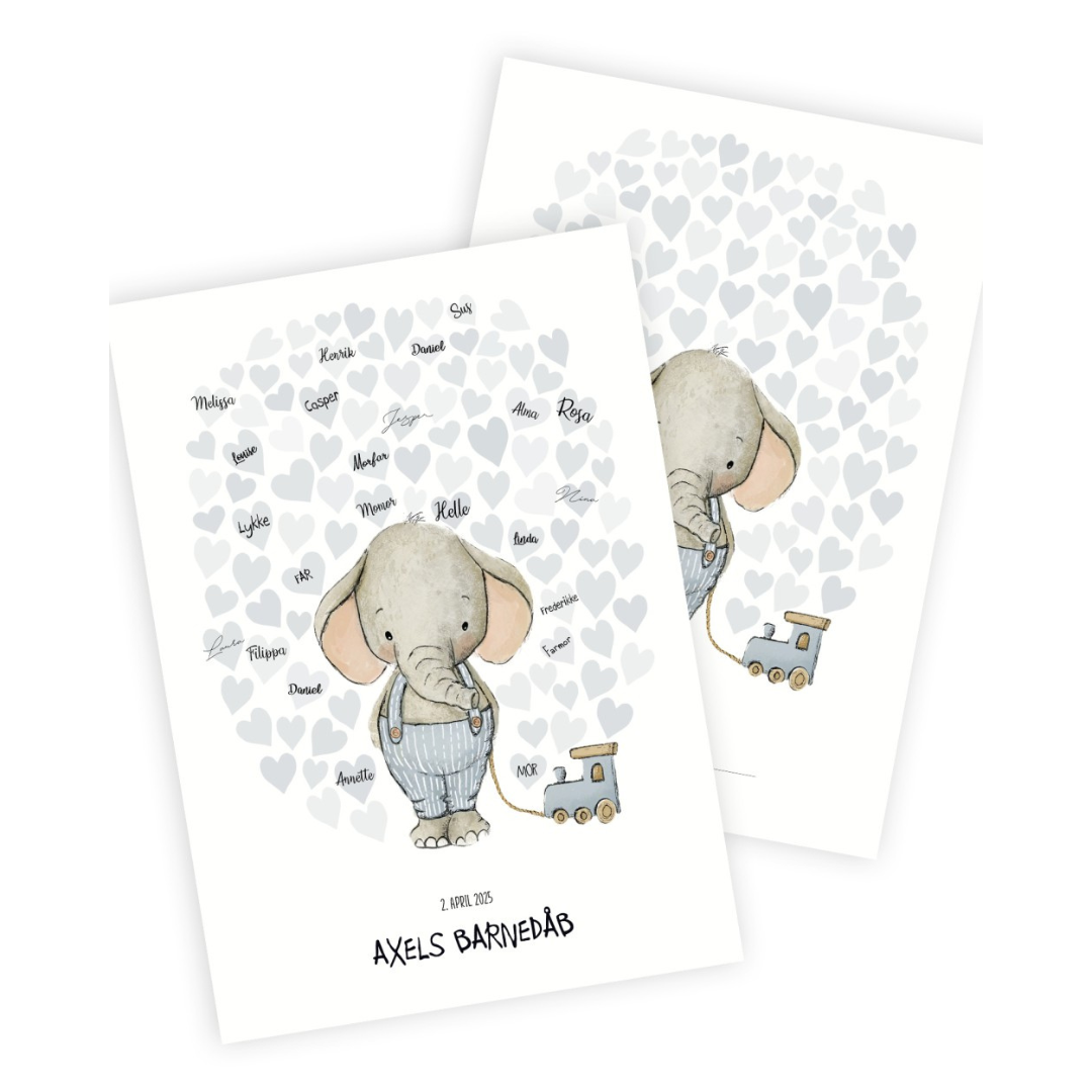En sød gæstebogsplakat med blå hjerter, der kan bruges til barnedåb, navngivning og fødselsdage.