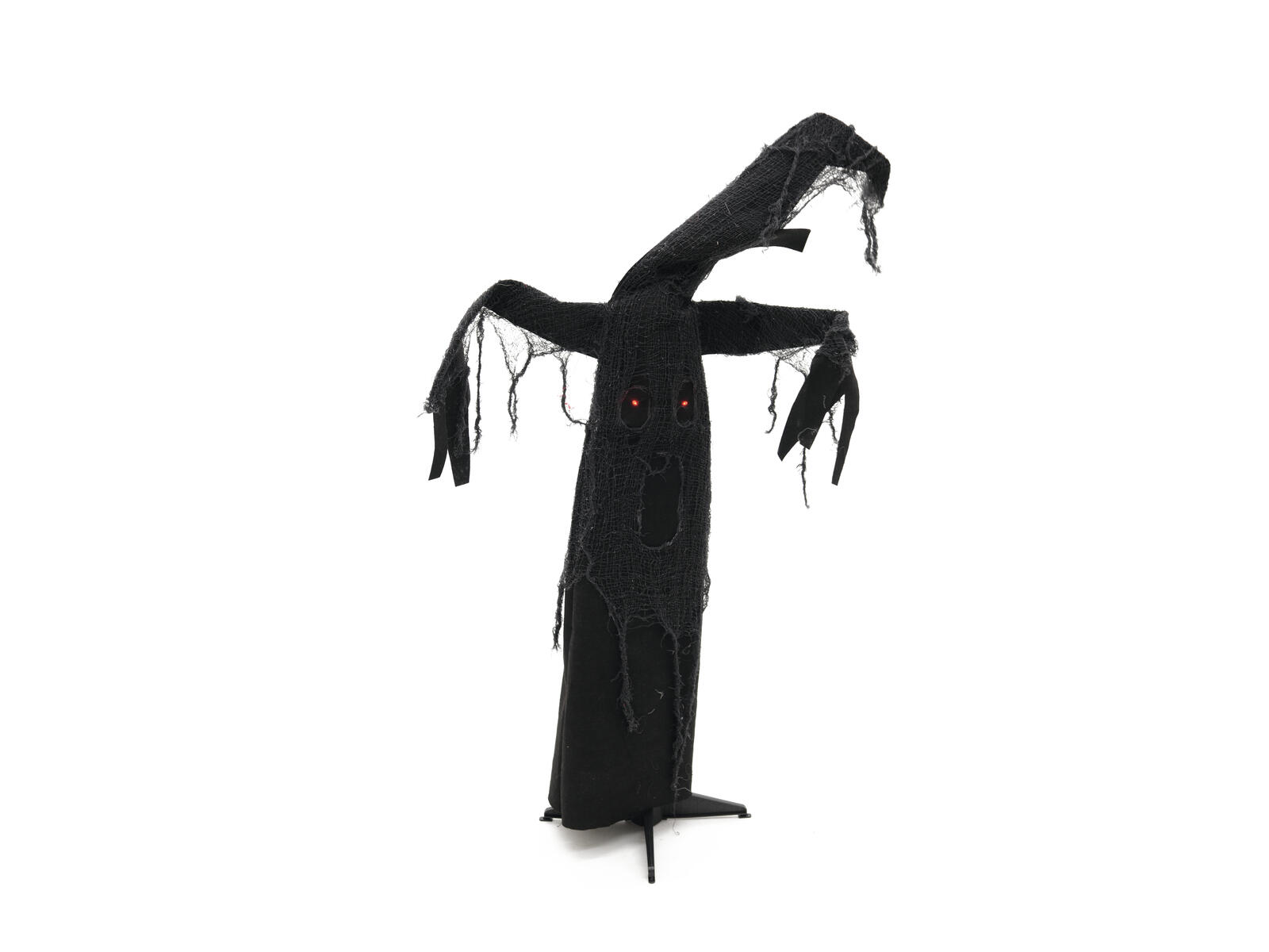 Skab uhyggelig stemning til halloween med Black Ghost Tree. Figuren reagerer på lyd og bevæger både hoved og arme, mens de røde blinkende øjne og de uhyggelige lydeffekter fuldender oplevelsen. Med en animeringstid på op til 13 sekunder giver den en skræmmende effekt, der passer perfekt til både indendørs og udendørs pynt.