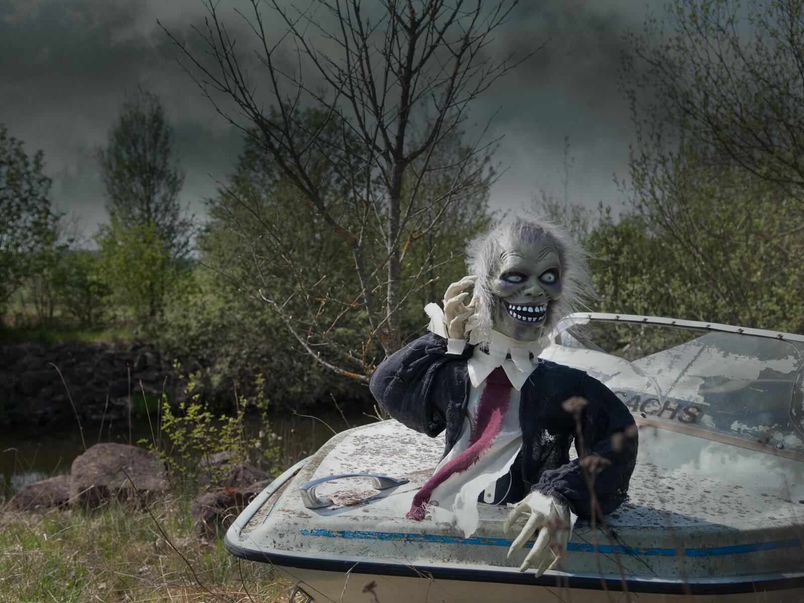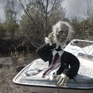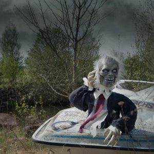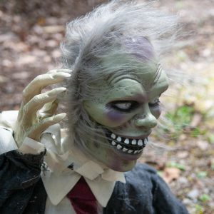 Gør din Halloween- eller temafest ekstra uhyggelig med “Theo” – en animeret zombie-overkrop, der kombinerer klovnens og zombiefigurens skræmmende træk. Med blinkende røde LED-øjne og gruopvækkende spøgelseshuslyd vil han straks få dine gæster til at føle gåsehud.