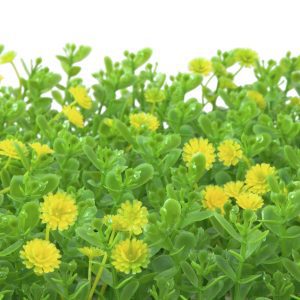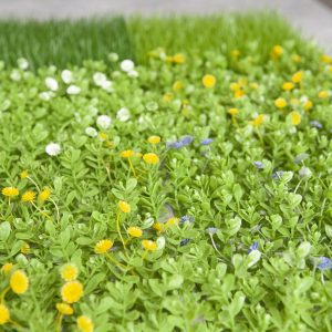 Denne kunstige græsmåtte er fremstillet i høj kvalitet med varierende grønne og gule toner, der efterligner ægte græs. Detaljerne i de enkelte strå giver et naturligt og levende udtryk, som fungerer godt både alene og i kombination med andre måtter for at skabe et større grønt område.