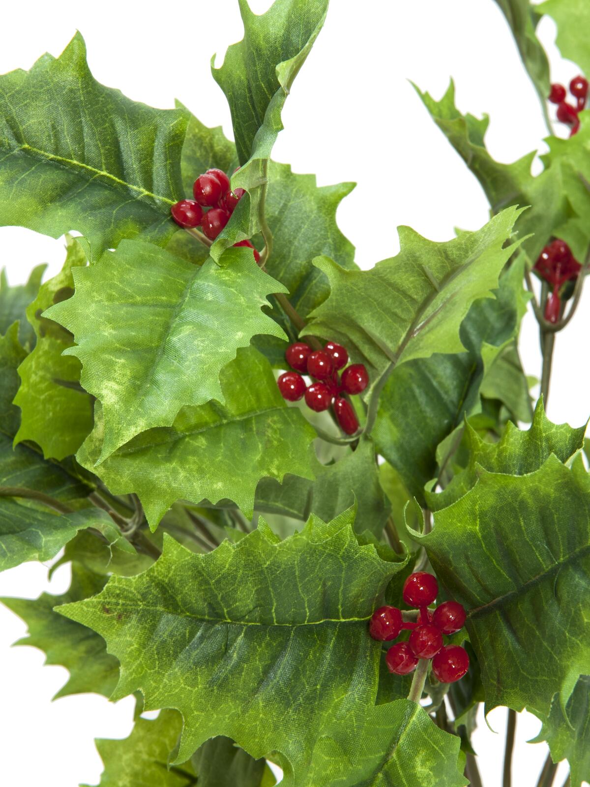 En kunstigt fremstillet Holly busk giver dig et vedvarende smukt grønt udtryk – uden at du behøver bekymre dig om sollys, jord eller vanding.