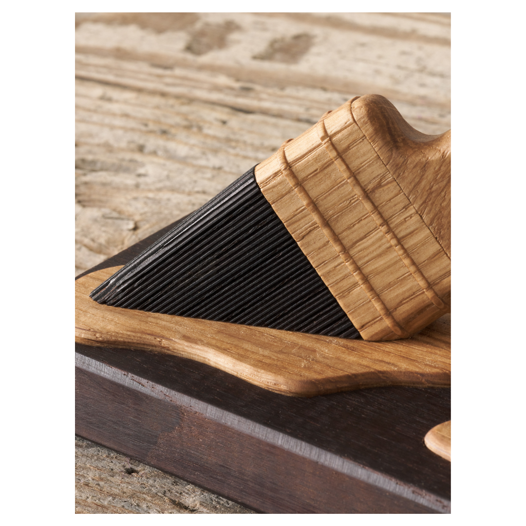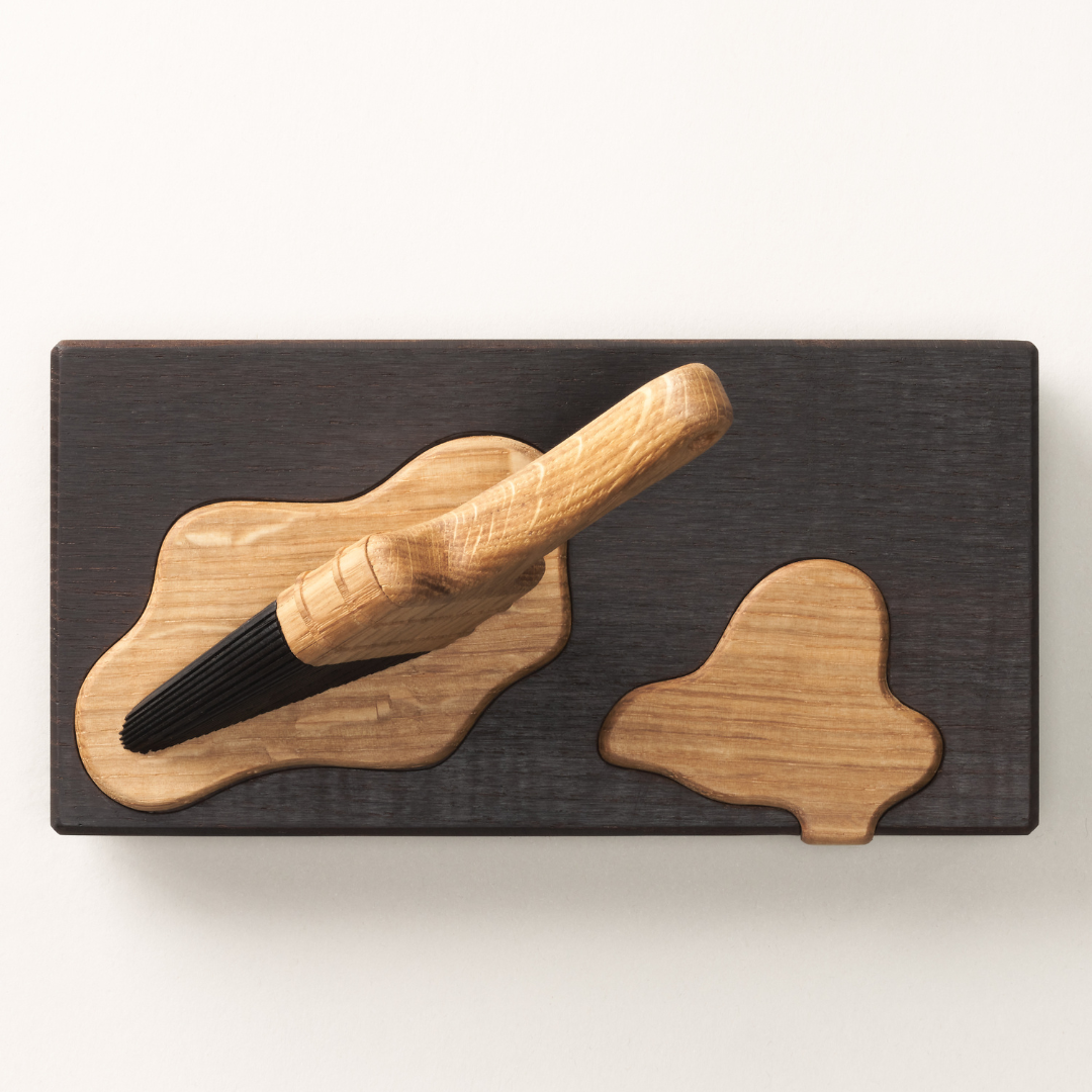 Skulpturen er fremstillet i kvalitetstræ af egetræ og ask og prydes af en flot udskåret pensel og malerpalette, der elegant ligger på en mørk plade – et stilfuldt blikfang til arbejdsbordet eller som dekorativ detalje i hjemmet.