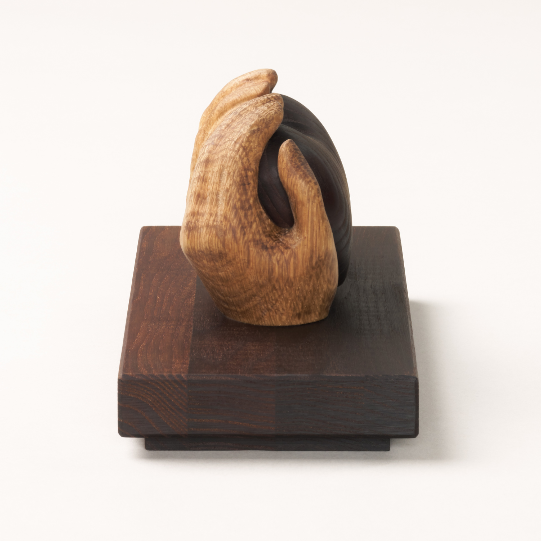 Skulpturen er udført i kvalitetstræ af egetræ og ask og prydes af en flot udskåret detalje – et symbol på omsorg og pædagogik – elegant placeret på en mørk plade. Den fungerer som både dekorativt blikfang og et minde om en vigtig milepæl i karrieren.
