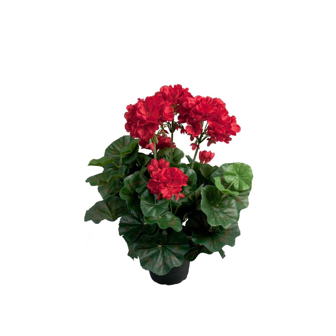 Den kunstige Pelargonie fra Mr Plant i flotte røde og grønne farver. Med naturtro blomster og fyldige blade. Den klare farve skaber et iøjnefaldende element i enhver indretning og tilføjer varme og hygge til rummet uden behov for pasning.