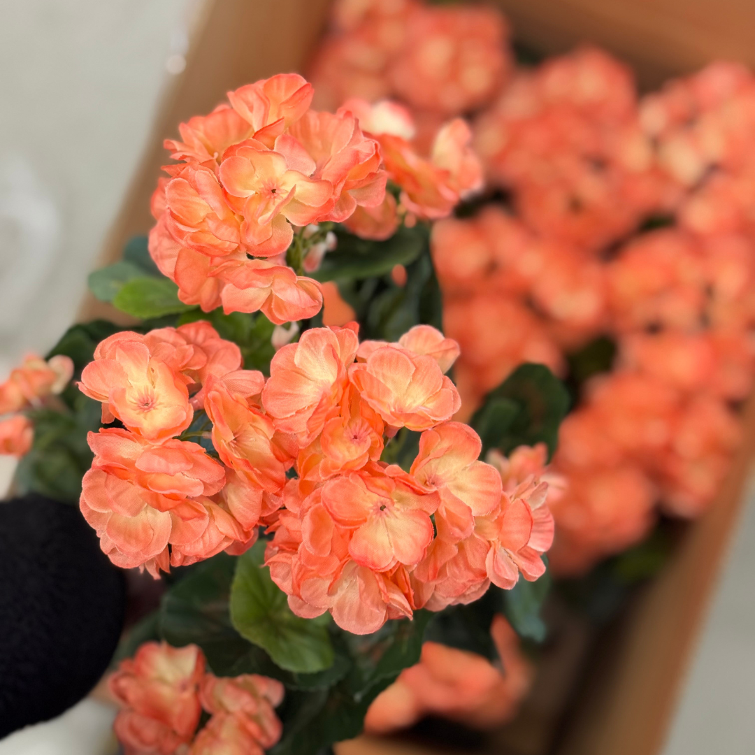 Den kunstige Pelargonie fra Mr Plant i en strålende orange farve bringer liv og energi ind i hjemmet. Med naturtro blomster og fyldige blade. Den klare farve skaber et iøjnefaldende element i enhver indretning og tilføjer varme og hygge til rummet uden behov for pasning.