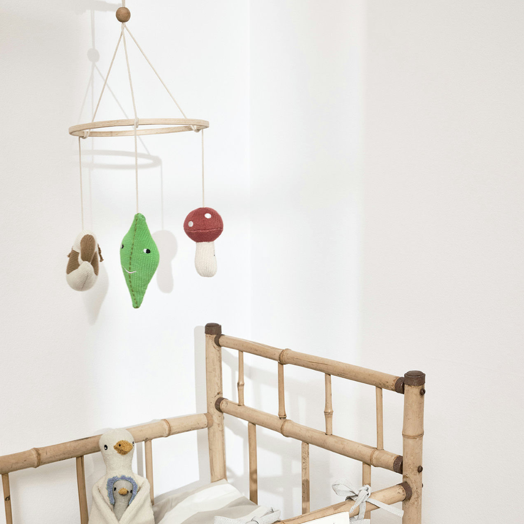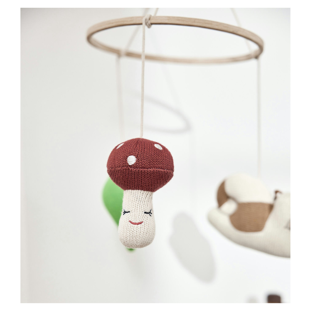 Giv børneværelset et charmerende og beroligende touch med denne Forest Uro fra OYOY, med tre hængende figurer: en rød og råhvid svamp, en brun og råhvid snegl og et grønt blad. De glade ansigter på figurerne skaber en indbydende og hyggelig stemning over sengen eller puslebordet.