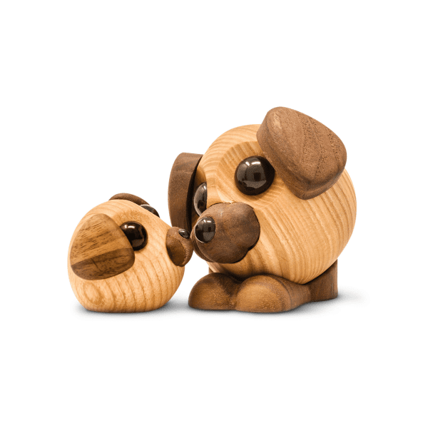 Den store Buddy består af to dele, samt med øre, som kan køres henover øjenene og lege skjul. Både Buddy og Molly kan sammen placeres i flere søde positioner. Den lille Luna er lavet med en magnet i bunden, så du kan bruge den sammen med de øvrige magnetiske trædyr fra FableWood.