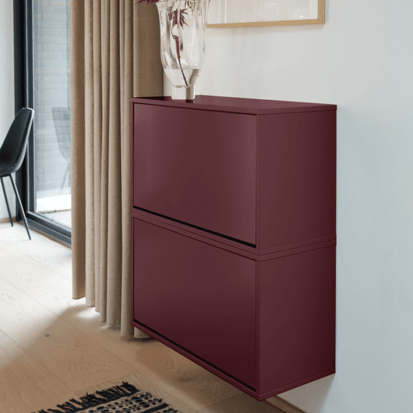 Skoopbevaringen er designet med fokus på både form og funktion: Farven og materialet giver et eksklusivt udtryk, mens den solide konstruktion sikrer optimal beskyttelse mod støv, lys og slid. Takket være det modulopbyggede system kan skoopbevaringen nemt tilpasses individuelle behov – uanset om det er til entréen, soveværelset eller walk-in-closet’et.