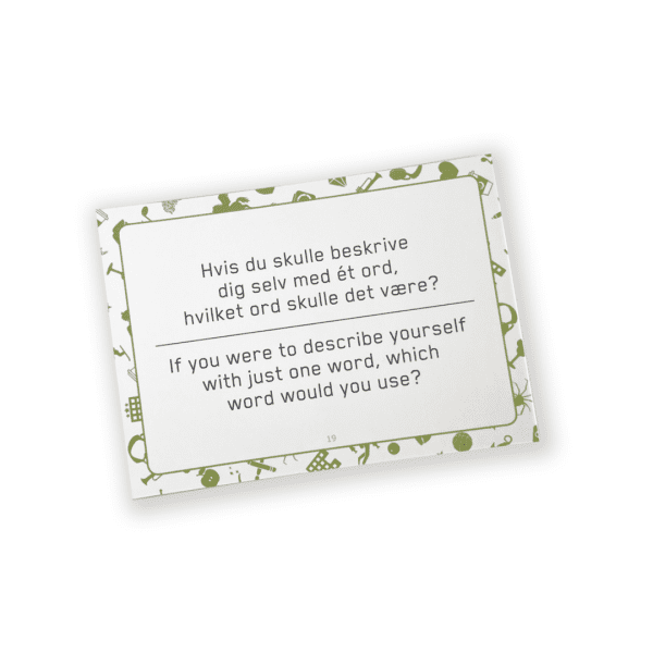 Du behøver derfor ikke sætte dig ind i strategiske spilleregler, men kan spille med på lige fod som alle andre. I lærer alle hinanden bedre at kende og har det sjovt. Her er ingen forkerte svar og spillet passer perfekt til at få et digitalt detox.