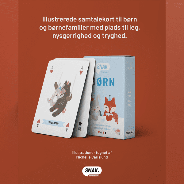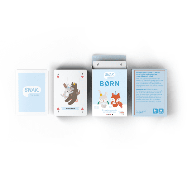 Illustrerede samtalekort til børn og børnefamilier med plads til leg, nysgerrighed og tryghed. BØRN er et hyggeligt og lærerigt kortspil, udviklet til at hjælpe børn med at lære sig selv, og menneskerne omkring dem, bedre at kende. Spillet har fokus på at styrke empati, nysgerrighed og evnen til fortælle og udtrykke ens tanker.