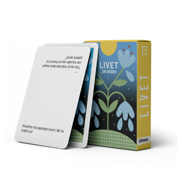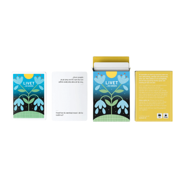 “LIVET OG DØDEN” er et sæt samtalekort, der berører både glæden og smerten ved livet. Kortene indeholder spørgsmål, der hjælper os med at tackle de svære samtaler, især når døden er helt tæt på. Vi kan stille spørgsmål som: Hvad vil du gerne huskes for? Har du oplevet døden tæt på i dit eget liv? Hvilke elementer i dit liv har hjulpet dig med at vokse som menneske?