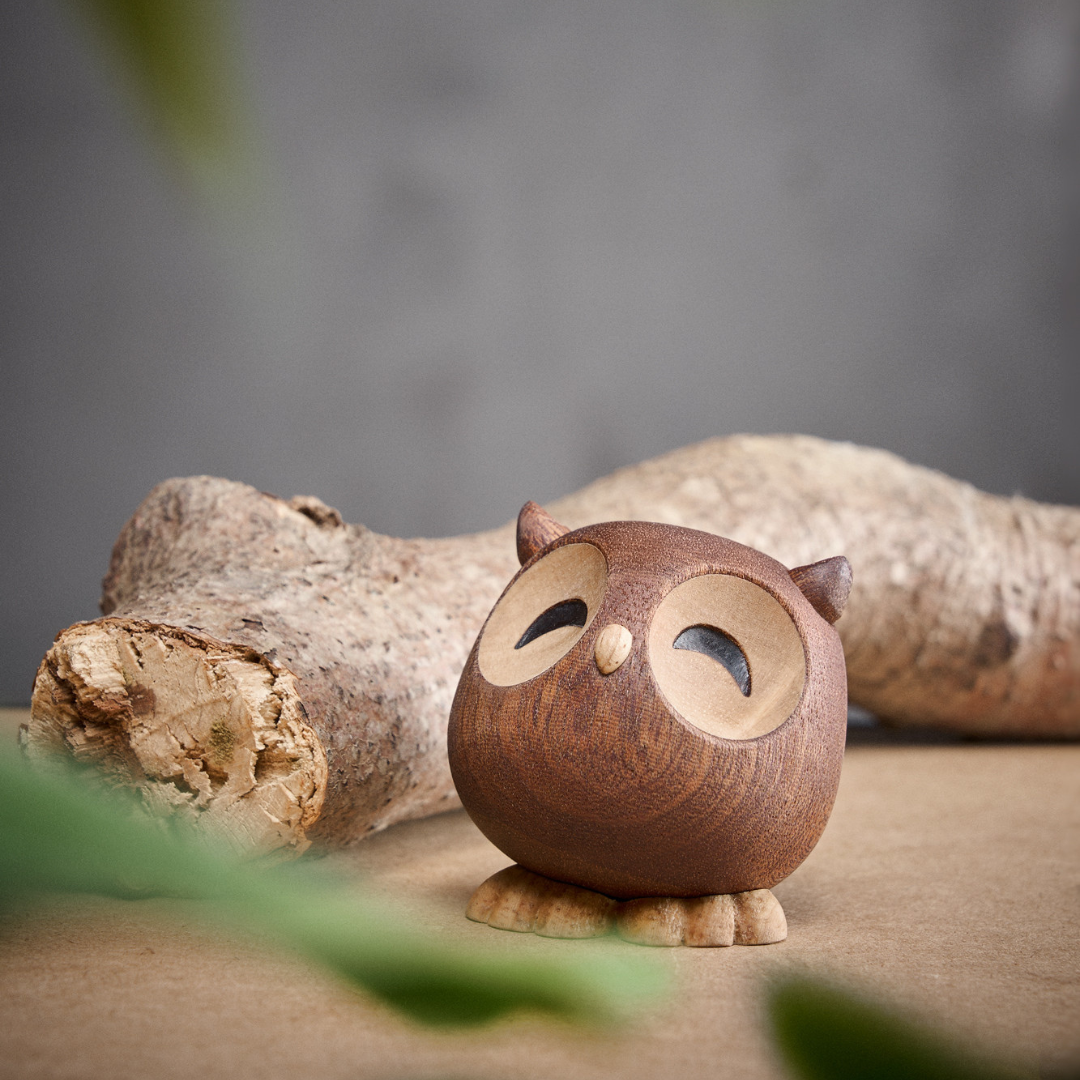 Sofia er fremstillet af 100% FSC-certificeret gummitræ og sapeletræ, hvilket sikrer et ansvarligt valg af materialer og et naturligt, varmt udtryk. Den fine kombination af træsorter giver uglefiguren et elegant og tidløst look, der passer smukt ind i enhver indretning.