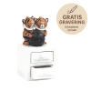 Ønsker du gravering? Her er, hvad du skal vide: Graveringen udføres med præcis lasergravering, hvilket sikrer et permanent resultat i en smuk grå farve. Indtast barnets fornavn, fødselsdato eller en personlig besked i de to tekstfelter for at tilføje gravering. Bemærk, at vi anvender standard skrifttypen Arial eller den mere elegante skrifttype Beautiful på alle vores produkter for et klassisk og læsbart udtryk.