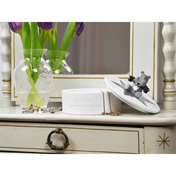 Skab et personligt og unikt udtryk med det smukke smykkeskrin der pynter fint på hylden eller kommoden. Smykkeskrinet er en perfekt gaveidé til fødseldagsbarnet, dåbsbarnet eller barselsbesøget.