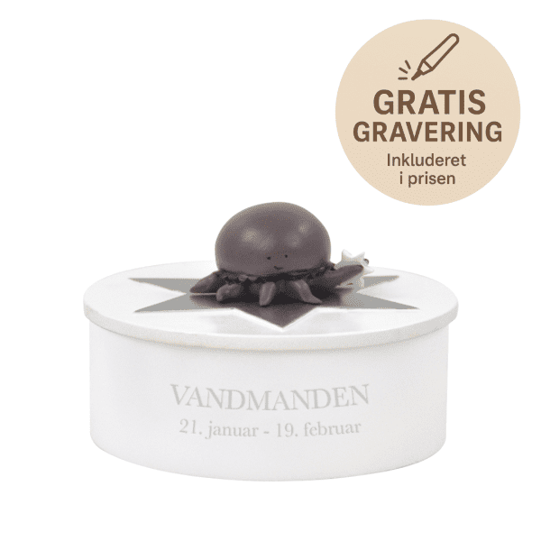 På dette smykkeskrin sidder Vandmanden på toppen. Den holder en lille stjerne der er malet med selvlysende maling. Stjernen lyser derfor fint op i mørket om natten. På siden står navnet på stjernetegnet, samt dato. Smykkeskrinet har et aftageligt låg og er indrettet med filt, samt et aftageligt skillerum i plexiglas.