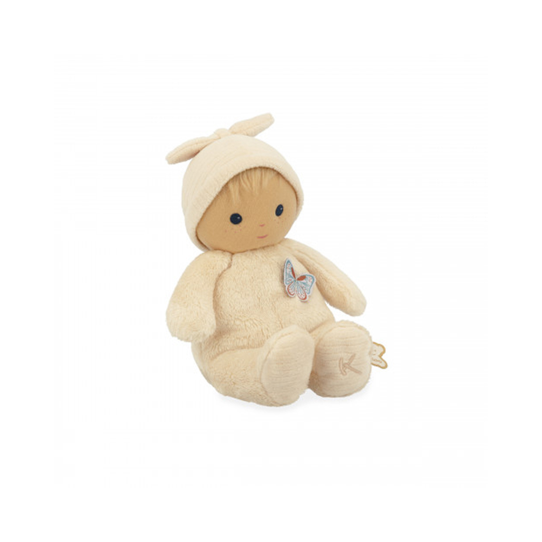 Baby Jasmine er fremstillet af 90% genanvendte materialer og kan maskinvaskes ved 30°, så hun altid er klar til nye kram og eventyr. En blød gave, der bliver starten på barnets egne minder om trøst, leg og kærlighed.