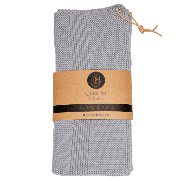 By Lohn’s strikkede håndklæder er perfekt til køkken, badeværelse eller som gæstehåndklæde. Den har en fin og enkel, samt aftagelig læderhank, så du selv bestemmer om håndklædet skal hænge lodret eller vandret.