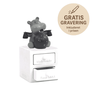 Ønsker du gravering? Her er, hvad du skal vide: Graveringen udføres med præcis lasergravering, hvilket sikrer et permanent resultat i en smuk grå farve. Indtast barnets fornavn, fødselsdato eller en personlig besked i de ønskede tekstfelter for at tilføje gravering. Bemærk, at vi anvender standard skrifttypen Arial eller den mere elegante skrifttype Beautiful på alle vores produkter for et klassisk og læsbart udtryk.