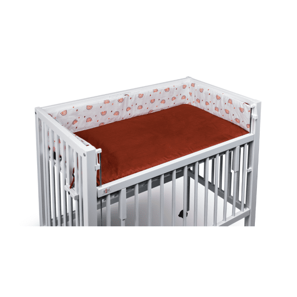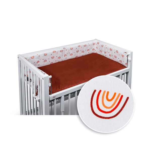 Super sød sengerend til Sofie bedside crib med små fine regnbuer.