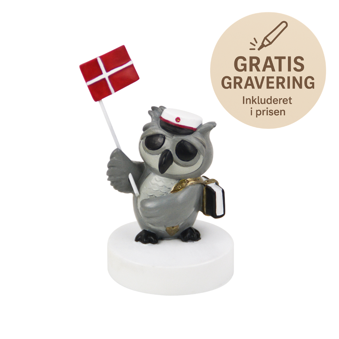 De håndmalede ugler er en personlig og unik gave, der med sit detaljerede design og plads til indgravering kan tilpasses helt efter dit ønske. Tilføj en gravering, og giv en gave, der vil blive værdsat i mange år fremover. Brug uglerne som pynt på bordet ved studentergildet eller som dekorative ophæng. Uanset hvor de placeres, spreder de glæde og minder om en stor milepæl i livet. Det aftagelige flag gør det nemt at tilpasse udseendet og anvendelsen.