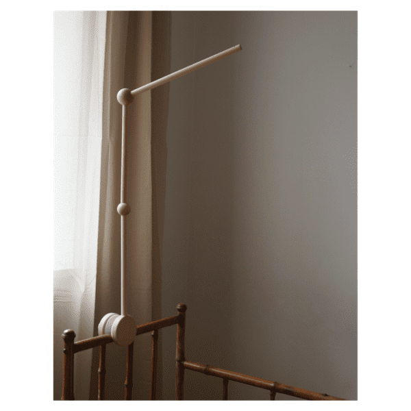 Skab et hyggeligt miljø for din baby med denne uroholder i træ. Perfekt til at hænge en uro op over tremmesengen, vuggen, puslebordet eller kravlegården. Den praktiske uroholder er designet til nem montering og fastgørelse på møbler med tremmer, hvilket gør det nemt at placere den præcis, hvor du har brug for den.