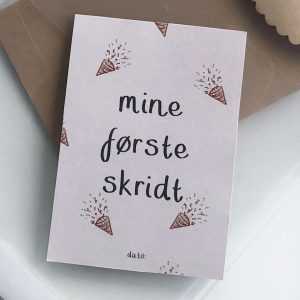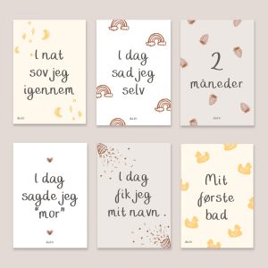 Milepælskortene kommer i en smart æske. Æsken er større end selve bunken med kort, så der nemt kan gemmes første sut, billeder og andre skønne minder sammen med milepælskortene. På den måde får I en æske hvor alle de første milepæle er samlet.